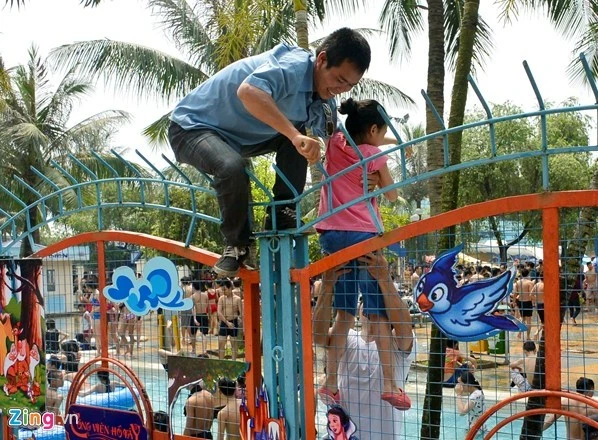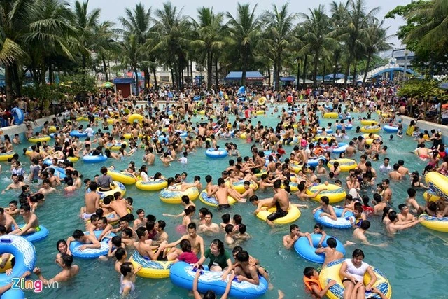 Sáng 19-4, Công viên nước Hồ Tây (Hà Nội) mở cửa miễn phí cho du khách vào vui chơi, tắm mát. Mặc dù giờ mở cửa tự do từ 8h đến 10h, tuy nhiên chỉ sau hơn một tiếng, gần như mọi khu vực của công viên đều đã quá tải. Ban quản lý đã cho đóng cửa, không đón thêm khách.