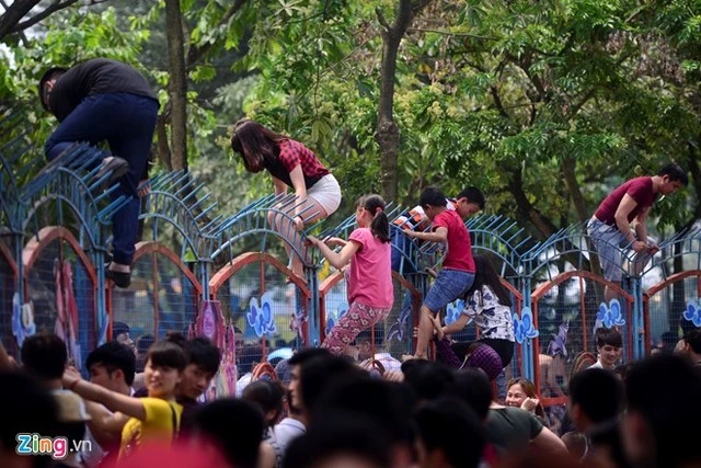 Điều bất ngờ là sau khi nhận lệnh đóng cửa, nhiều người đã đến đây nhưng không được vào bèn …trèo lên hàng rào bao quanh khu vực công viên để vào bên trong. Hàng rào công viên được thiết kế bằng sắt, cao đến hai mét, có cây nhọn chĩa lên rất nguy hiểm. Thế nhưng tất cả từ nam, nữ, lớn, bé, thậm chí cả trẻ em….đều bất chấp nguy hiểm, vượt rào xông vào.