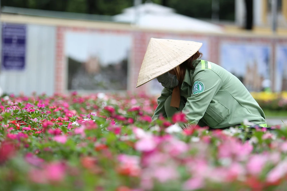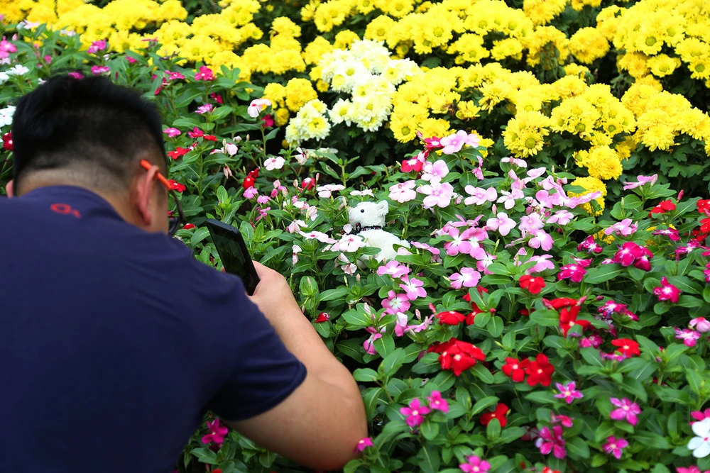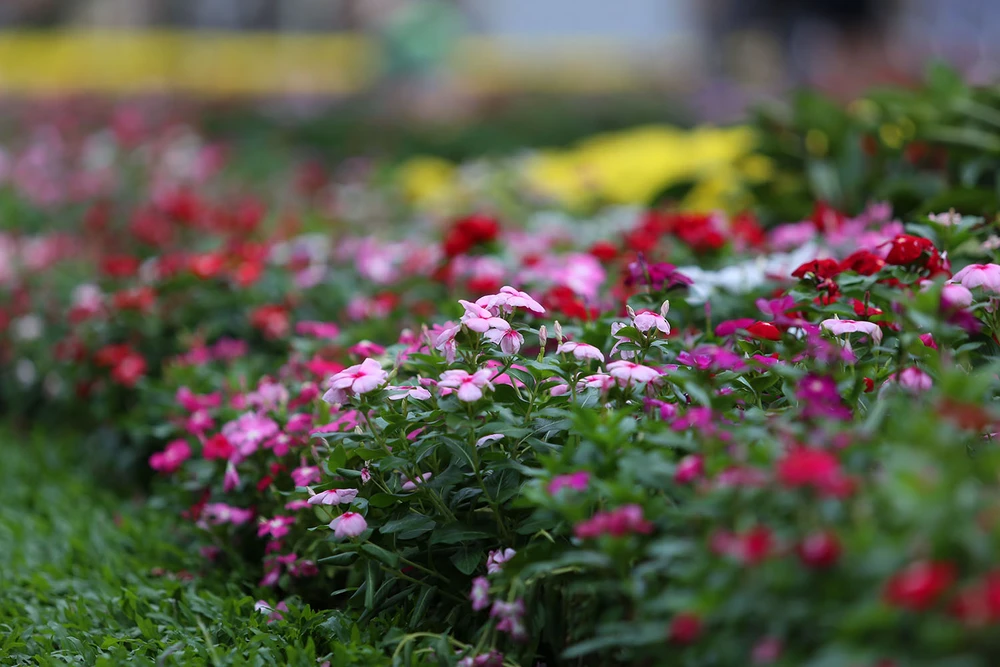 Những luống hoa đầy màu sắc đã tạo nên không gian tươi mới cho công viên.