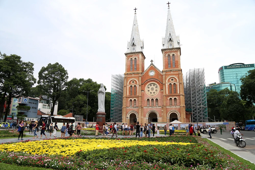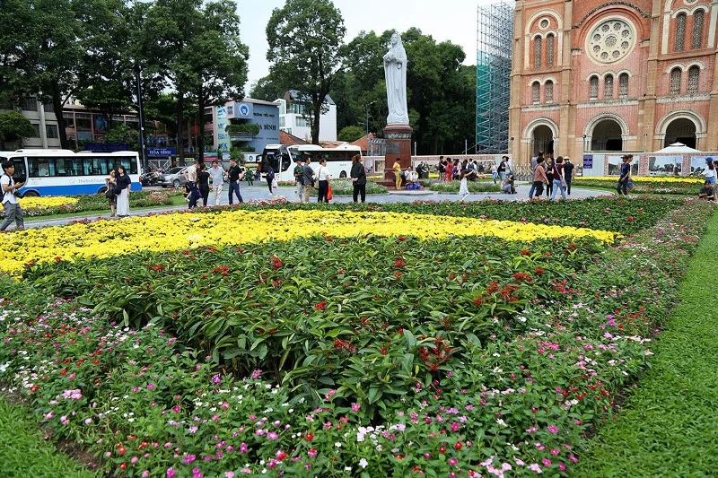 Nằm trong chương trình cải tạo những công viên tại khu vực trung tâm TP.HCM, vừa qua, UBND quận 1 đã cho cải tạo công viên hơn 700 m2 trước nhà thờ Đức Bà thành một công viên hoa đầy sắc màu.