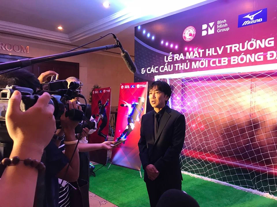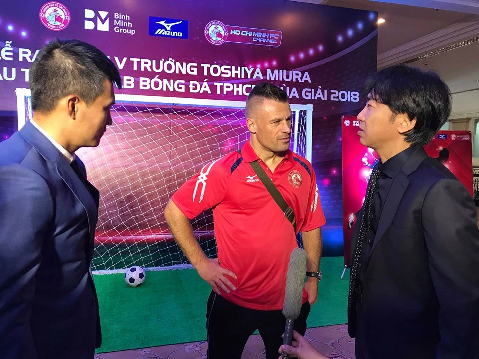 HLV Miura vui vẻ trao đổi với báo chí và hứa hẹn sẽ nâng tầm CLB TP.HCM.