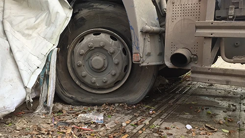 Vỏ xe bị bể làm tài xế kiểm soát xe không được