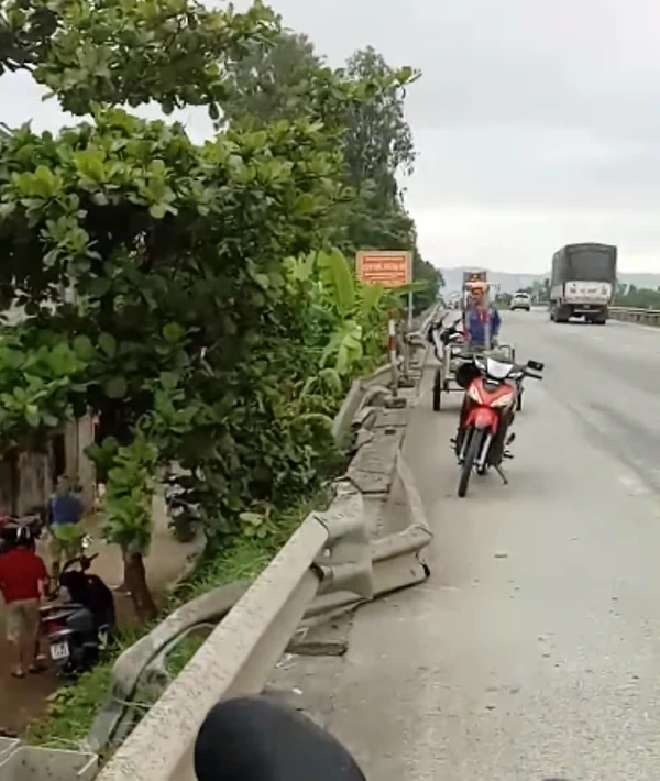 Dãy hộ lan bên quốc lộ 1A tránh TP Vinh bị đâm hỏng.