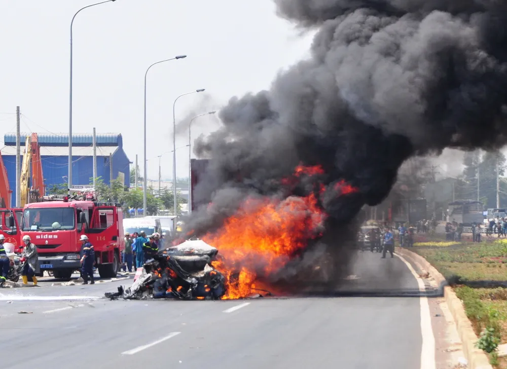 Vào khoảng 11 giờ 20 ngày 12 – 2, chiếc container lưu thông từ Suối Tiên về Đồng Nai. Khi chạy trên quốc lộ 1A đoạn qua ngã ba Tân Tân, thị xã Dĩ An, tỉnh Bình Dương thì bốc cháy. Tài xế phát hiện khói đen xông lên từ gầm xe đã cho phương tiện tấp vào bên vệ đường rồi nhảy ra khỏi cabin kêu cứu.