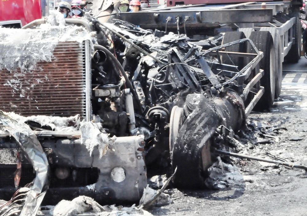 Container cháy ngùn ngụt khi chạy trên đường - Ảnh AP