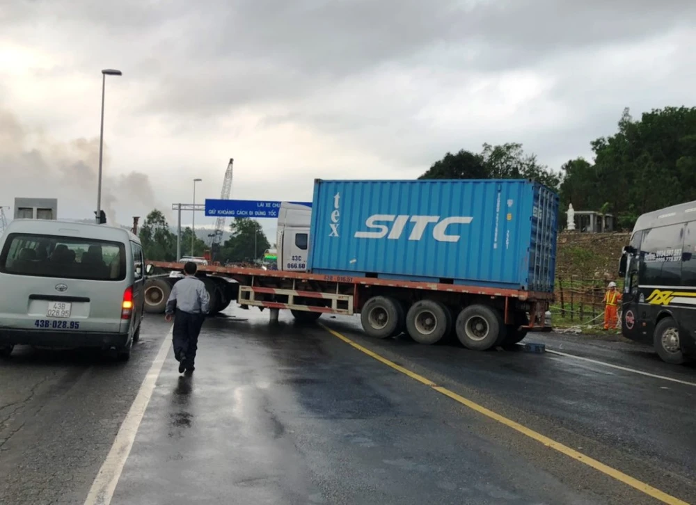 Sáng 13-1, xe container 43C-066.60 kéo theo romooc 43R-016.51 do tài xế Nguyễn Tấn Tuân (51 tuổi, ngụ xã Tam Nghĩa, huyện Núi Thành, Quảng Nam) cầm lái chạy trên đường tránh phía nam hầm Hải Vân theo hướng Bắc-Nam.