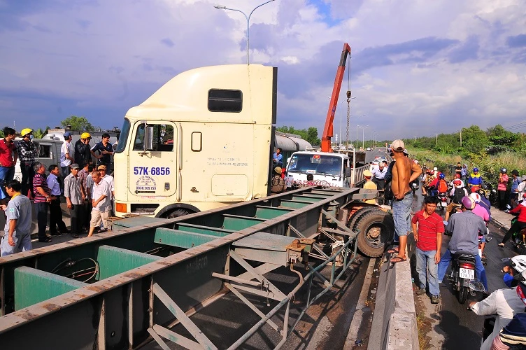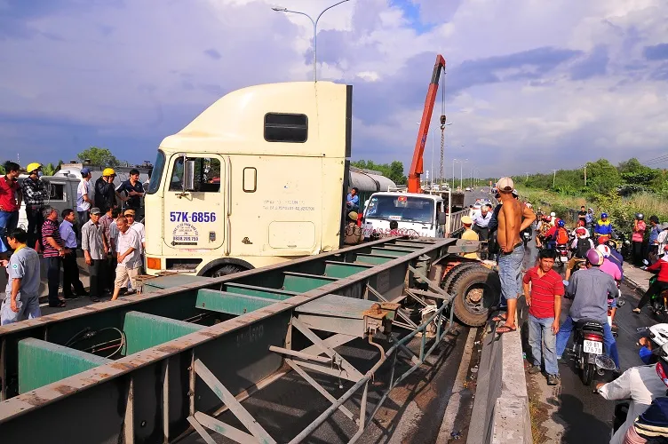 Khoảng 13 giờ 20 ngày 22 - 11, container có biển số 57K - 6856 di chuyển hướng từ quận 7 đi quận 2. Khi vừa đổ dốc cầu Phú Mỹ (đoạn giáp ranh giữa quận 7 - 2), chiếc xe bỗng mất lái đâm thẳng vào trụ điện ở dải phân cách làn đường rồi theo đà lao đến ủi tung cả dải phân cách rồi dừng lại.