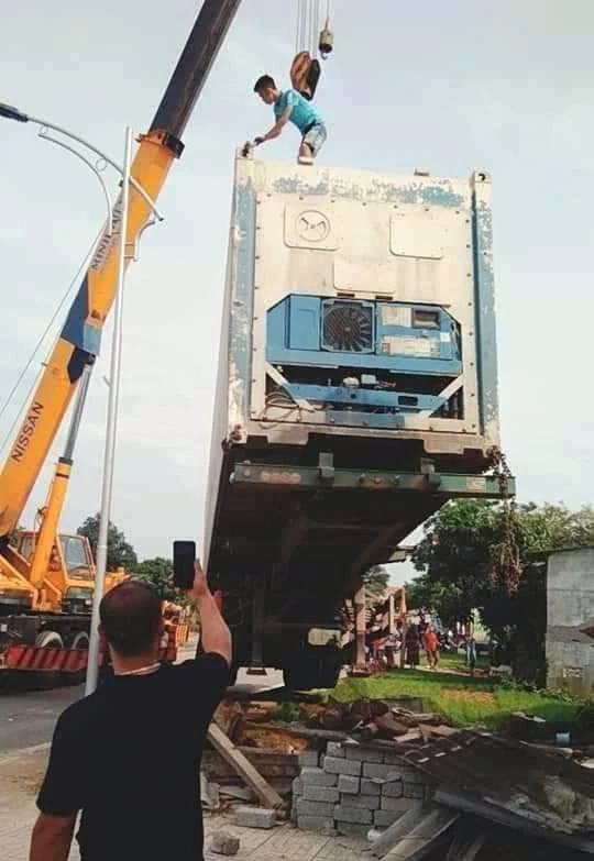 Cho đến trưa cùng ngày, lực lượng chức năng mới cẩu được chiếc xe và thùng container ra khỏi hiện trường.