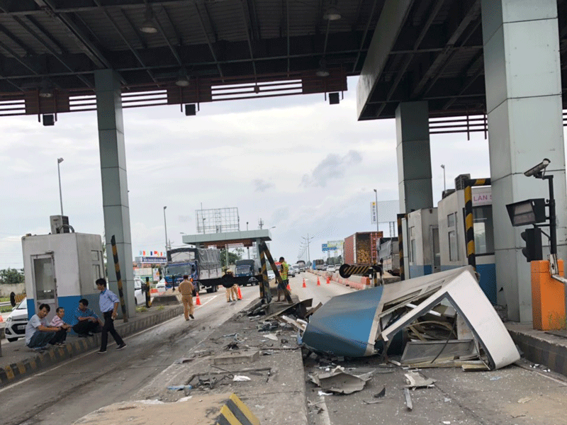 Cabin trạm thu phí bị tông sập hoàn toàn