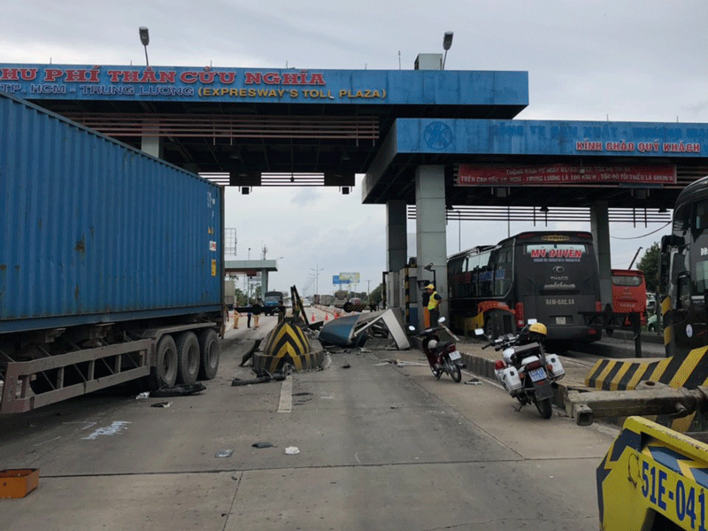 Khi đến trạm thu phí cao tốc TP.HCM – Trung Lương (xã Thân Cửu Nghĩa, huyện Châu Thành, Tiền Giang), xe bất ngờ tông vào trạm thu phí. Cú tông mạnh khiến cabin số 3 trên đường cao tốc bị sập hoàn toàn, buồng thu phí vỡ nát.