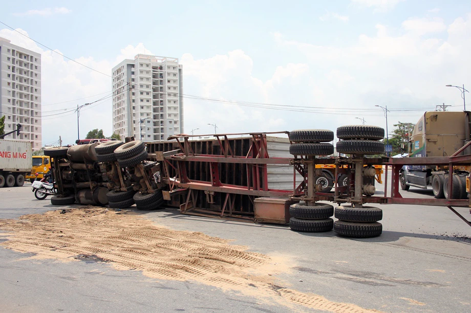 Khoảng 11 giờ 30 trưa 28 - 4, container biển số 57K - 9927 chở hàng chục tấn bắp từ cảng Cát Lái về xa lộ Hà Nội. Khi đến vòng xoay Mỹ Thủy (phường Cát Lái, quận 2) thì mất lái. Sự cố khiến xe mất thăng bằng, trượt dài rồi lật nhào xuống. Tài xế bị thương nhưng may mắn không có người đi đường nào bị tai nạn.