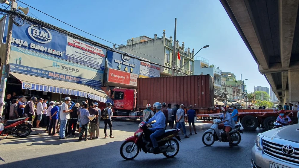 Thông tin ban đầu, vào khoảng 13 giờ 30, xe container mang BKS: 51C-…. do một nam tài xế điều khiển trên đường Nguyễn Văn Quỳ, nằm theo hướng từ quận 7 sang quận 2 (đoạn dưới gầm cầu Phú Mỹ).