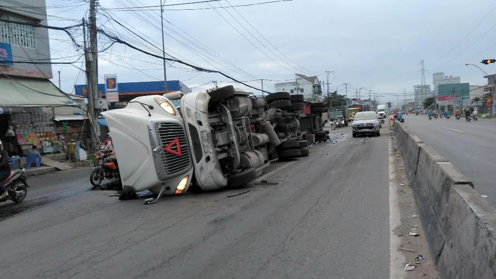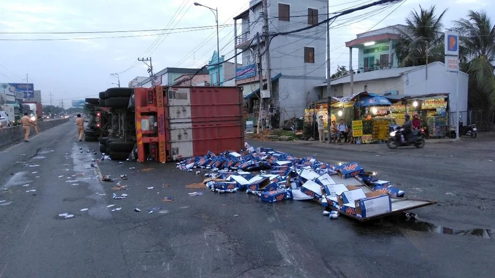 Thông tin ban đầu, khoảng 4 giờ 40, xe đầu kéo 43C-166.13 kéo theo rơmoóc 43R-012.56 do tài xế Nguyễn Tuấn Hùng (xã Đông Hòa, huyện Châu Thành, Tiền Giang) điều khiển chở nhiều bia chạy trên quốc lộ 1A, hướng đi miền Tây về TP.HCM.