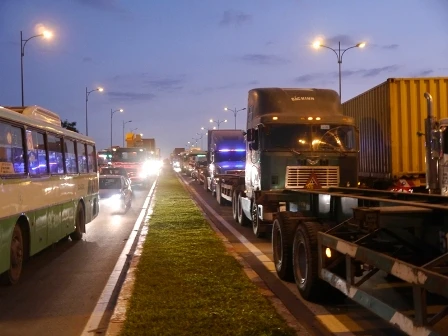 Giao thông khu vực Cát Lái Ngã tư Thủ Đức tắt nghẽn suốt nhiều giờ liền.