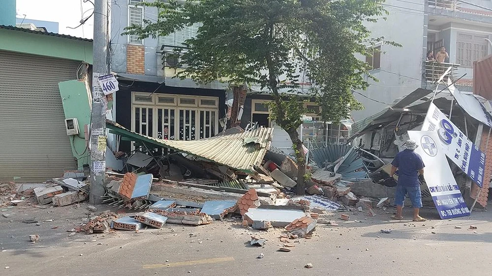 Hiện trường tan hoang sau khi container tông nhiều nhà dân ở Bình Tân. Ảnh HT.