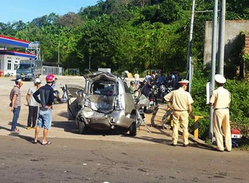 Chiếc Innova bị đẩy về phía trước khoảng 10 m rồi đâm sầm vào đuôi xe tải khác. Tai nạn làm ô tô du lịch biến dạng, sáu người trên xe bị thương và kẹt cứng bên trong. Người dân địa phương phá cửa xe đưa các nạn nhân đến bệnh viện cấp cứu.