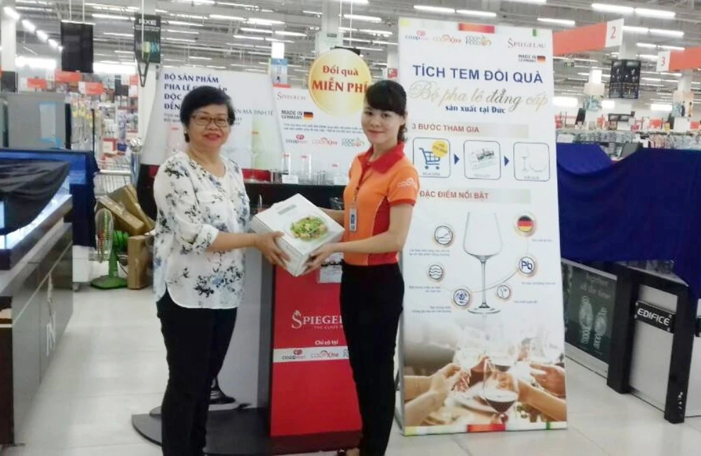 Sưu tầm đủ số lượng tem theo thể lệ, khách hàng sẽ được đổi miễn phí các bộ sản phẩm pha lê cao cấp của thương hiệu uy tín Spiegelau, nhập khẩu độc quyền từ Đức. Có nhiều lựa chọn dành cho khách hàng như bộ hai ly vang đỏ, bộ hai ly vang trắng, bộ hai ly cao, bộ hai ly thấp, bình đựng nước, tô kích cỡ lớn hoặc tô nhỏ.