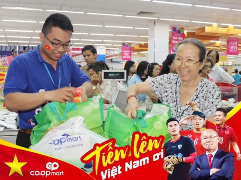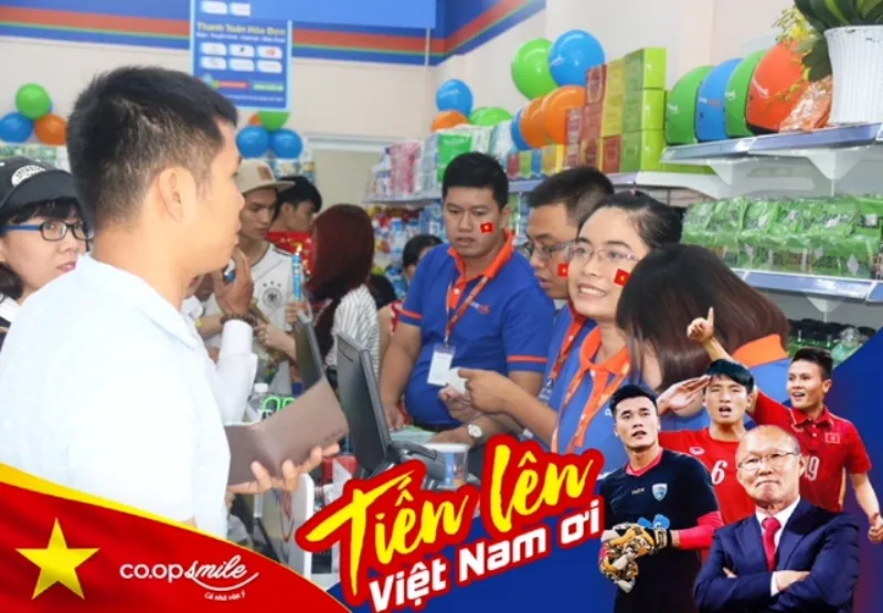 Bên cạnh đó, hệ thống siêu thị Co.opmart, Co.opXtra và Co.op Food trên cả nước còn huy động hơn 10.000 cán bộ nhân viên và khách hàng ủng hộ trận chung kết U23 Việt Nam gặp Uzbekistan bằng nhiều hình thức như theo dõi qua tivi, xem trực tuyến, thay đổi cover photo trên Facebook… nhằm tạo không khí ủng hộ sôi nổi từ offline đến online.