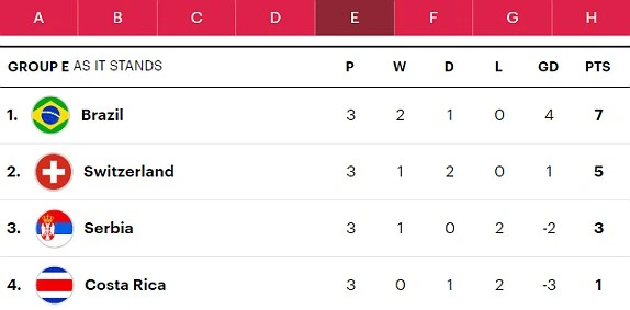 Trận đấu kết thúc với tỉ số 2-2, và nó đủ để Thụy Sĩ giành vé vào vòng 16 đội cùng với Brazil.