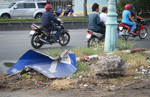 Người dân ở khu vực này cho biết cột biển báo này bị xe tải tông gãy đã lâu nhưng không thấy ai đến dựng lại. Mọi người đề nghị cơ quan chức năng sớm xử lý cột biển báo này để tránh mất mỹ quan và để người đi đường biết hiệu lệnh.