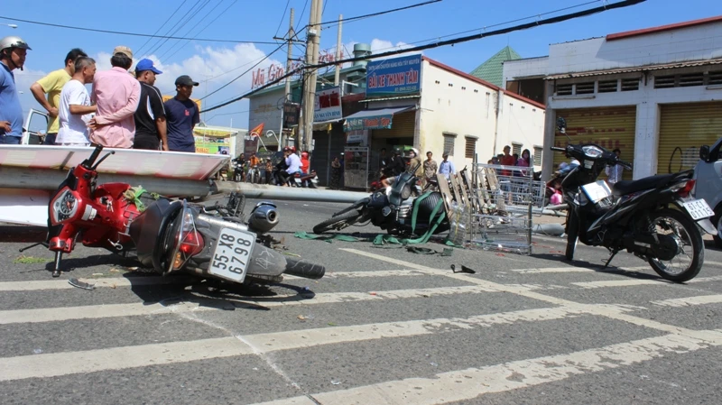 Trước đó 8/11, người dân sống đã thông báo lên chính quyền địa phương về việc có một cột điện đường sắp ngã. Lo sợ cột điện ngã, người dân đã dùng thang gỗ chống một bên tránh việc cột đèn này bị đổ sập gây nguy hiểm cho người đi đường. Nhưng tới sáng thì cột điện đường này bất ngờ đổ xuống và đè lên 3 xe máy đang lưu thông trên đường.