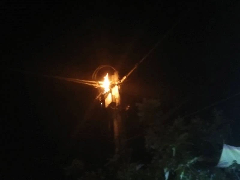 Theo ghi nhận của PV tại hiện trường, vào thời gian trên, một đường dây trên cột điện trước quán nhậu L.N trên đường Lý Thường Kiệt (TP Tam Kỳ, Quảng Nam) chập cháy. Tia lửa bắn sang các dây điện bên cạnh.
