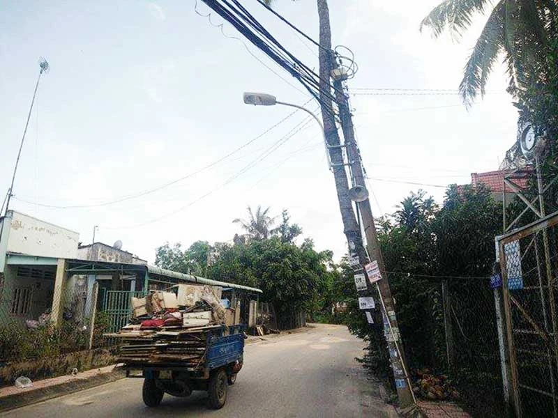 Bà con sống trong khu vực luôn lo lắng, chẳng may trời mưa gió, cột điện sẽ đổ gục, gây nguy hiểm cho mọi người.