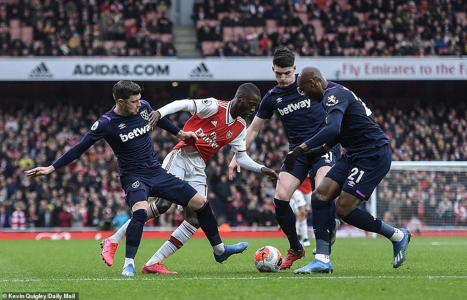 Dồn ép liên tục nhưng Arsenal vẫn không thể có được cơ hội làm rung mành lưới của thủ môn Fabianski. Thậm chí ở phút bù giờ cuối hiệp một, tiền đạo Nketiah té ngã trong vòng cấm nhưng “Pháo Thủ” vẫn không được trọng tài cho hưởng phạt đền.