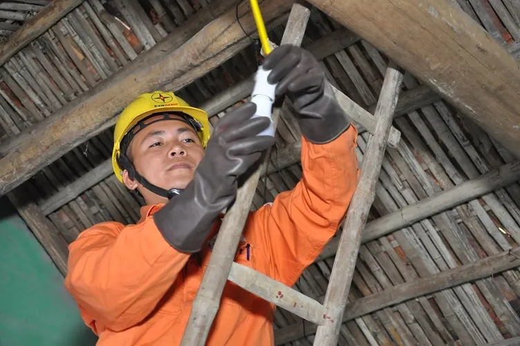 Cán bộ, nhân viên EVN thay đèn LED miễn phí cho các hộ gia đình nghèo.