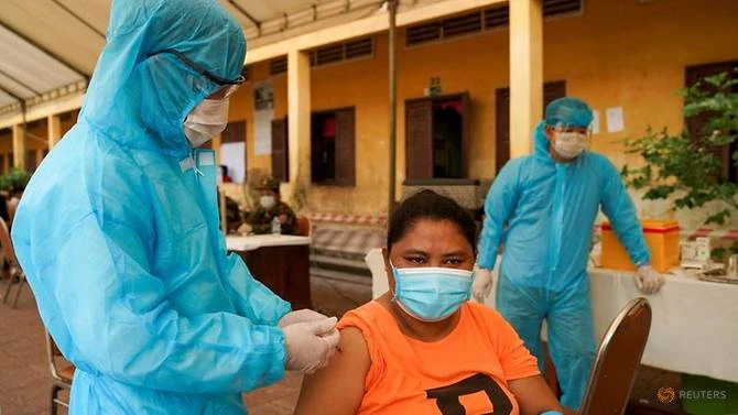 Nhân viên y tế Campuchia tiêm vaccine ngừa COVID-19 cho một người dân ở Phnom Penh, vào ngày 1-5. Ảnh: REUTERS