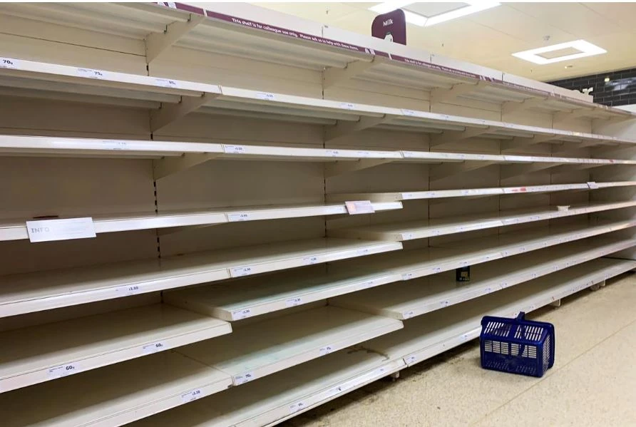 Hàng hóa hết sạch trong siêu thị ở London (Anh) ngày 13-3. Ảnh: REUTERS