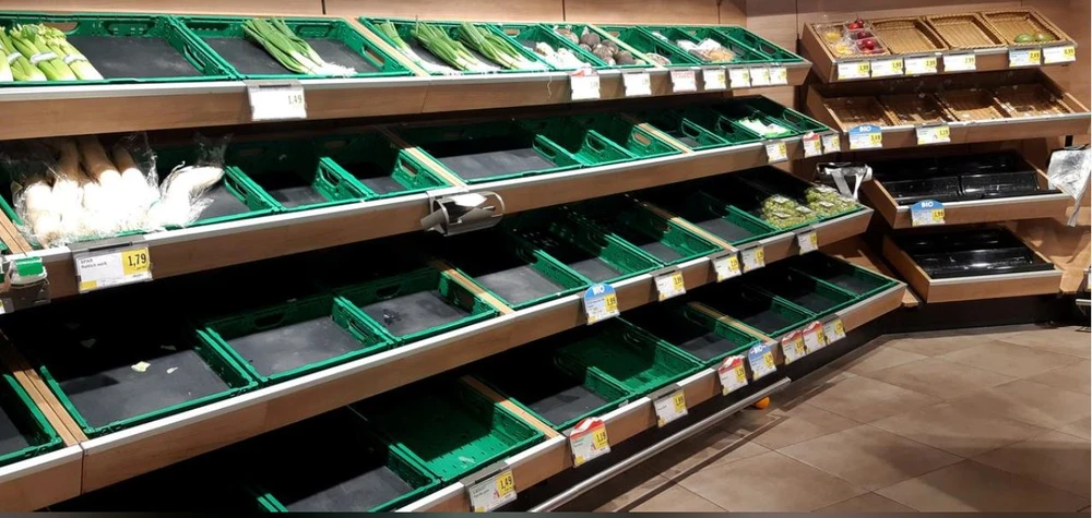 Hàng hóa được mua sạch ở siêu thị tại thủ đô Vienna (Áo) ngày 14-3. Ảnh: REUTERS