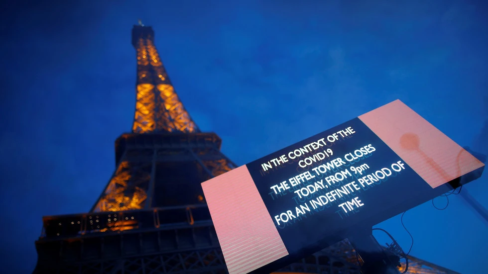 Tháp Eiffel đóng cửa mùa dịch COVID-19. Ảnh: REUTERS