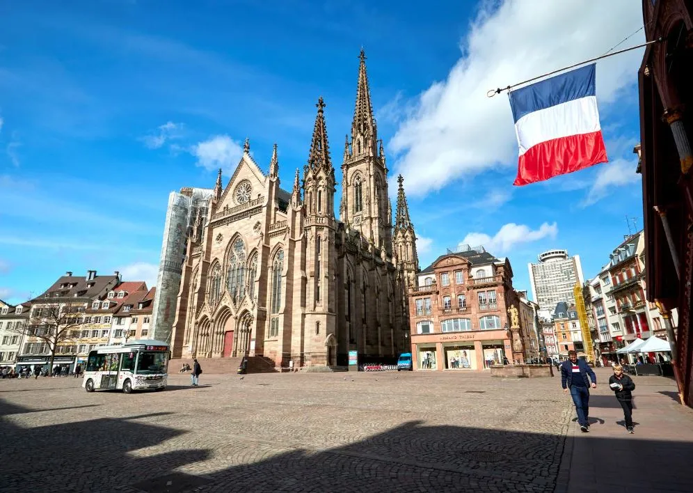 Trước nhà thờ Saint-Etienne tại thị xã Mulhouse thuộc tỉnh Haut-Rhin, vùng Grand Est (Pháp) mùa dịch COVID-19. Ảnh: REUTERS