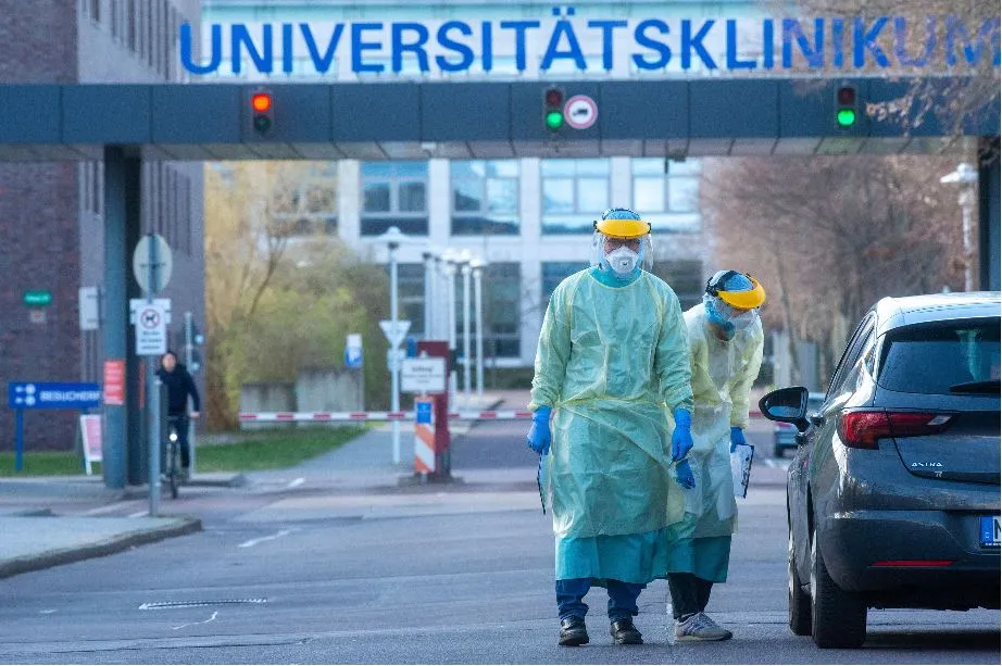 Nhân viên y tế trước một bệnh viện ở TP Magdeburg (Đức) ngày 21-3. Ảnh: AP