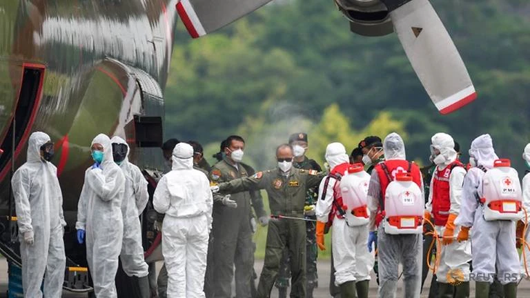 Một máy bay chở thiết bị y tế từ Trung Quốc sang hỗ trợ Indonesia. Ảnh: REUTERS