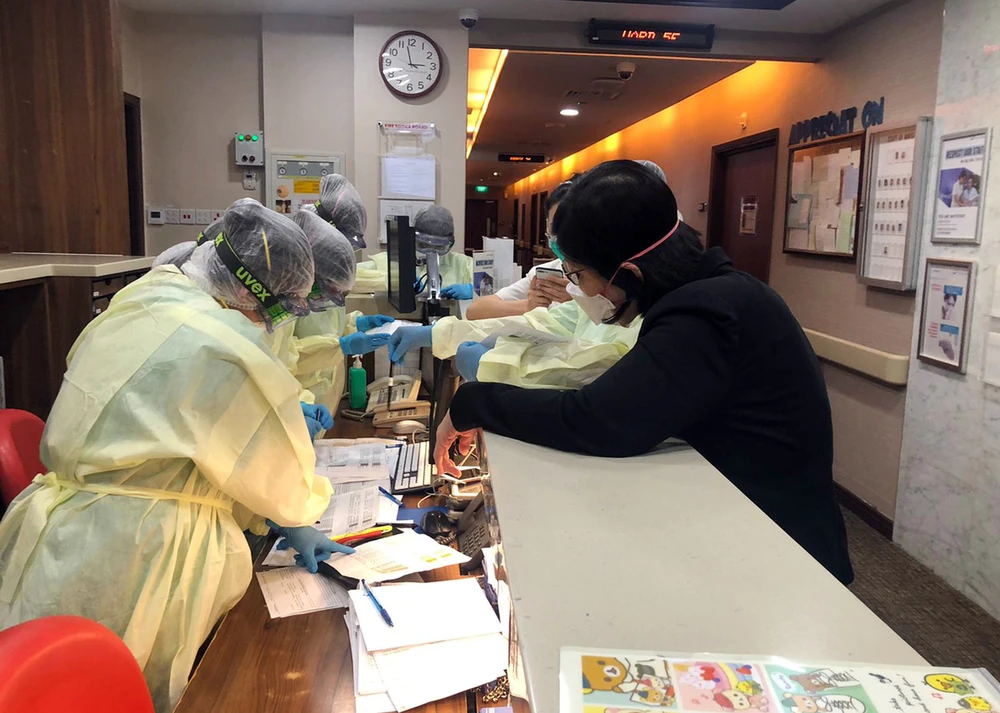 Nhân viên y tế Bệnh viện Mount Elizabeth làm hồ sơ chuẩn bị đón một bệnh nhân COVID-19 nhập viện. Ảnh: ST