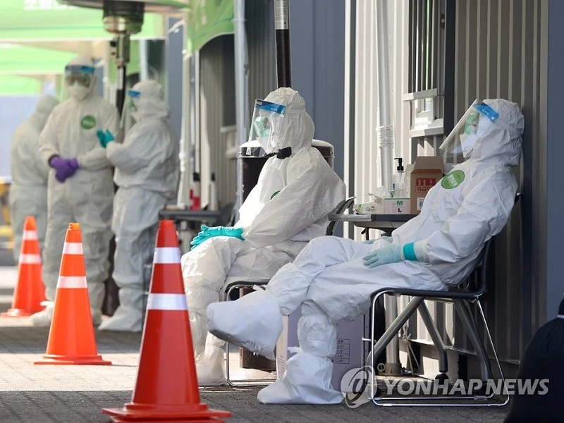 Các nhân viên y tế ở Seoul tranh thủ nghỉ ngơi sau thời gian dài căng mình vì dịch COVID-19. Ảnh: YONHAP