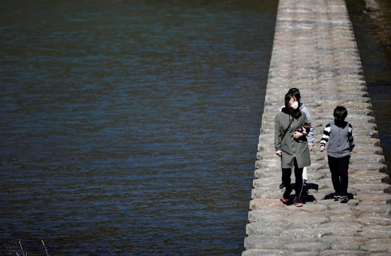 Một gia đình đeo khẩu trang đang đi qua một con đường mòn ở quận Cheongdo, Gyeongsang Bắc (Hàn Quốc). Ảnh: REUTERS