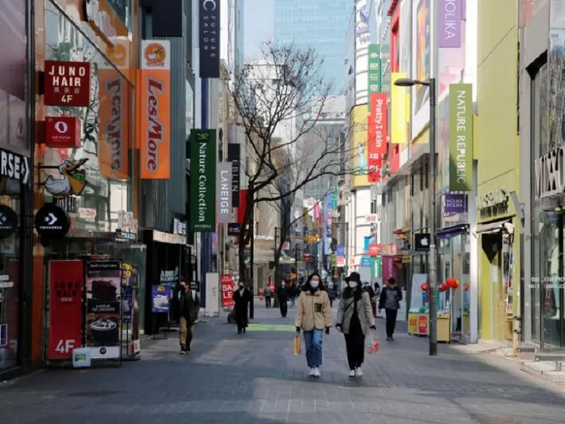 Một con phố ở thủ đô Seoul thưa thớt người qua lại trong mùa dịch COVID-19. Ảnh: REUTERS