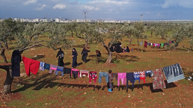 Bà Um Ali sống trong một khu trại dựng lên giữa cánh đồng, lùm cây ô liu và những ngọn đồi của tỉnh Idlib thuộc tây bắc Syria do phe nổi dậy kiểm soát. Phần lớn trẻ em ở đây bị sổ mũi do sống trong điều kiện khắc nghiệt.