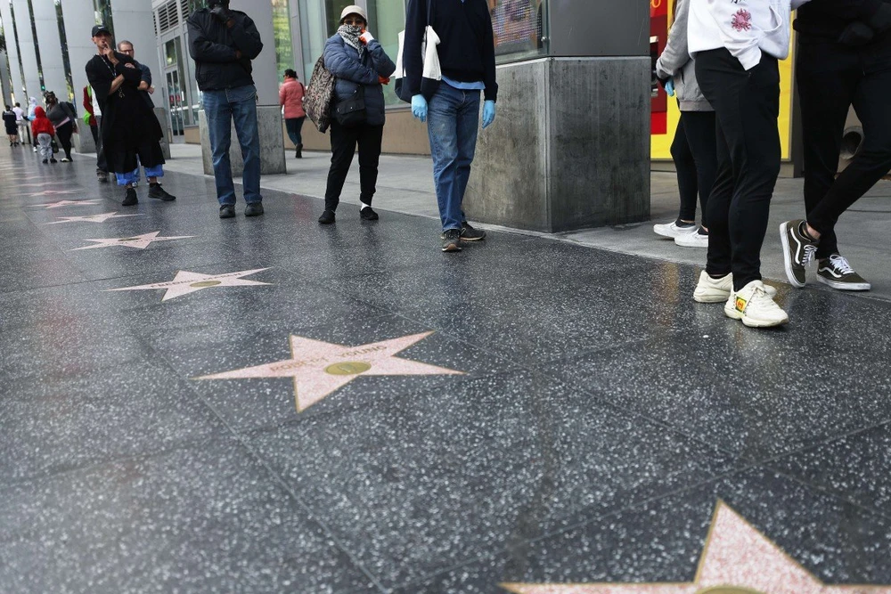 Khách hàng duy trì khoảng cách khi xếp hàng để vào siêu thị Trader Joe dọc theo Đại lộ Danh vọng Hollywood, khi đại dịch COVID-19 lan rộng ở California. Ảnh: AFP