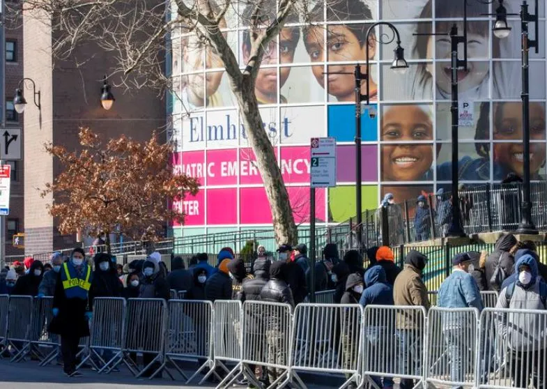 Người dân New York xếp hàng xét nghiệm COVID-19 tại BV Elmhurst, ở quận Queens, New York hôm 24-3. Ảnh: AFP