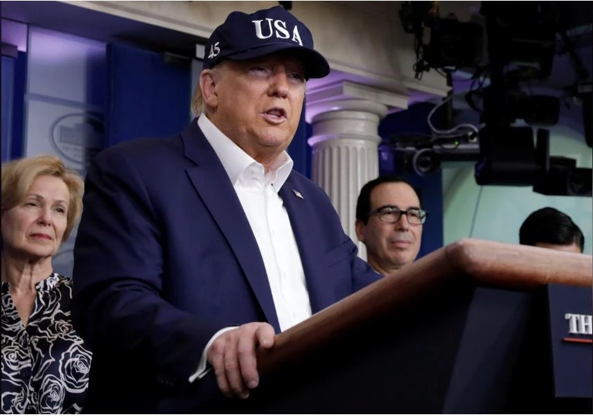 Tổng thống Donald Trump họp báo về COVID-19 tại Nhà Trắng ngày 14-3. Ảnh: REUTERS