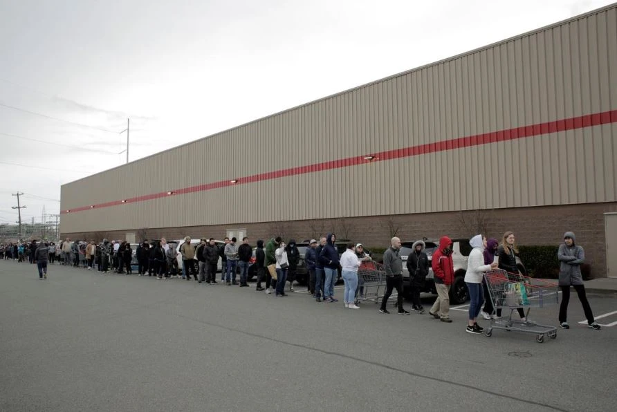 Xếp hàng chờ vào siêu thị Costco mua hàng tích trữ tại TP Seattle, bang Washington (Mỹ) ngày 14-3. Ảnh: REUTERS