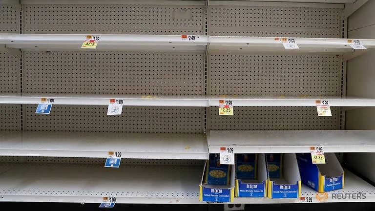 Quầy siêu thị trống không ở cửa hàng Stop&Shop ở TP Port Washington, hạt Nassau, bang New York (Mỹ) ngày 14-3. Ảnh: REUTERS
