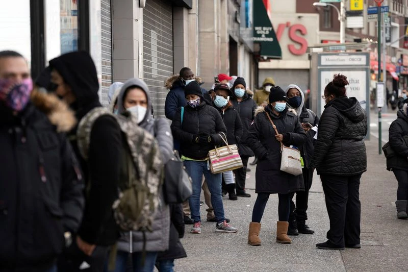 Người dân Mỹ xếp hàng bên ngoài cơ sở Chăm sóc Y tế khẩn cấp CityMD để được xét nghiệm COVID-19 ở New York, ngày 6-1. Ảnh: REUTERS