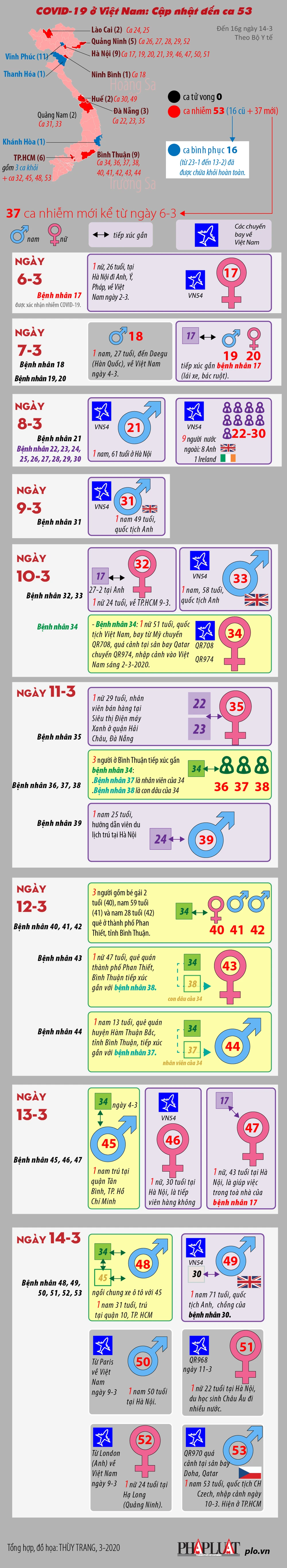 (PLO)- Đến 8 giờ 30 sáng 14-3, tổng số ca nhiễm COVID-19 ở Việt Nam vẫn là 47 bệnh nhân.