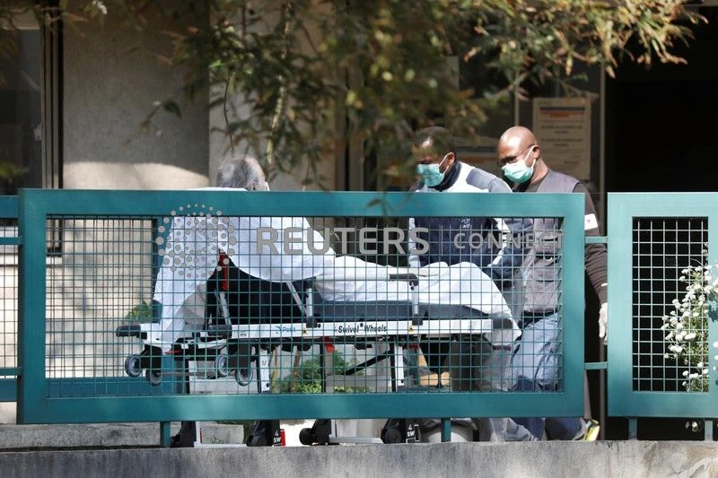 Các nhân viên y tế chuyển một bệnh nhân từ viện dưỡng lão Jardins des Plantes (Paris) đến bệnh viên. Ảnh: REUTERS