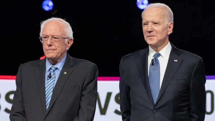 Thượng nghị sĩ Sanders và cựu Phó Tổng thống Biden, hai ứng viên hàng đầu tranh quyền đề cử bên đảng Dân chủ. Ảnh: BLOOMBERG